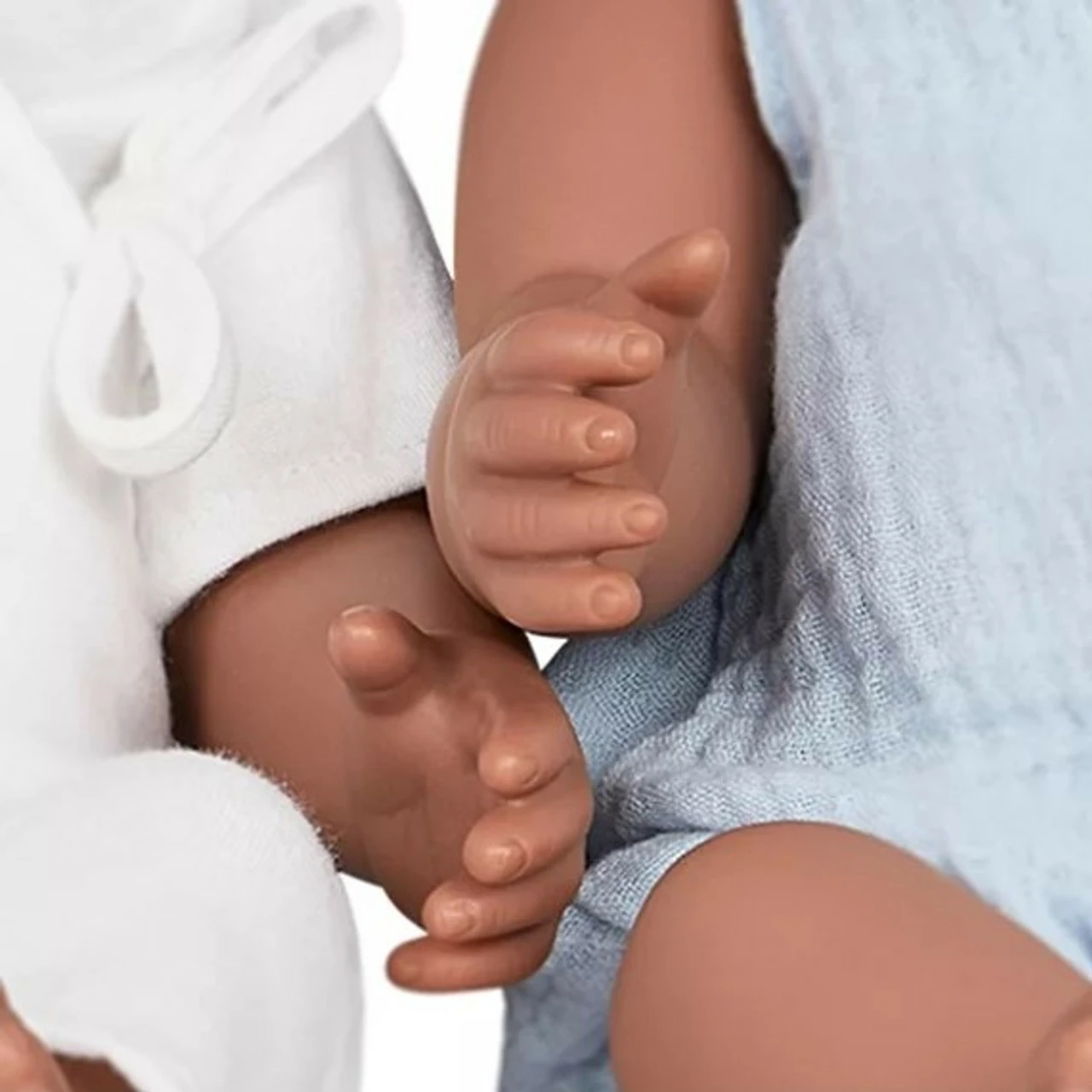 These 14-inch newborn Babi by Battat boy and girl dolls feature brown eyes, soft eyelashes, realistic faces, hands, and feet, and huggable soft bodies to cuddle.