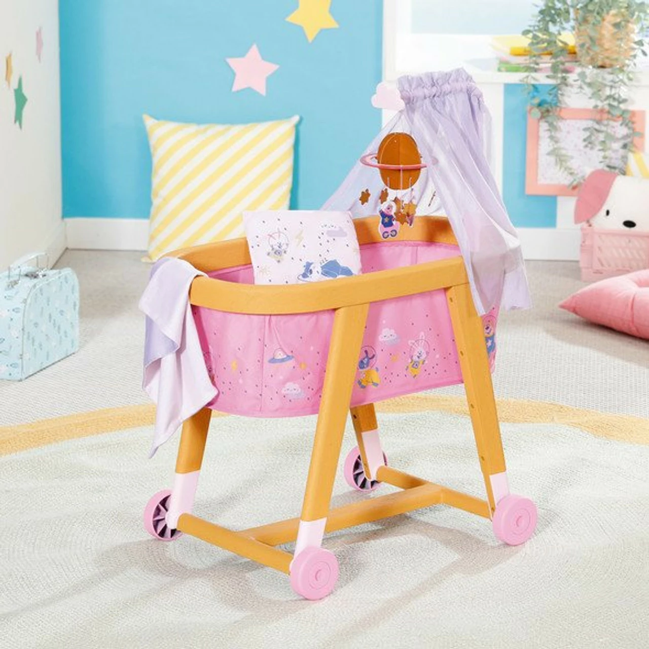 - BABY born Good Night Bassinet fabric canopy, planet mobile and bedding.