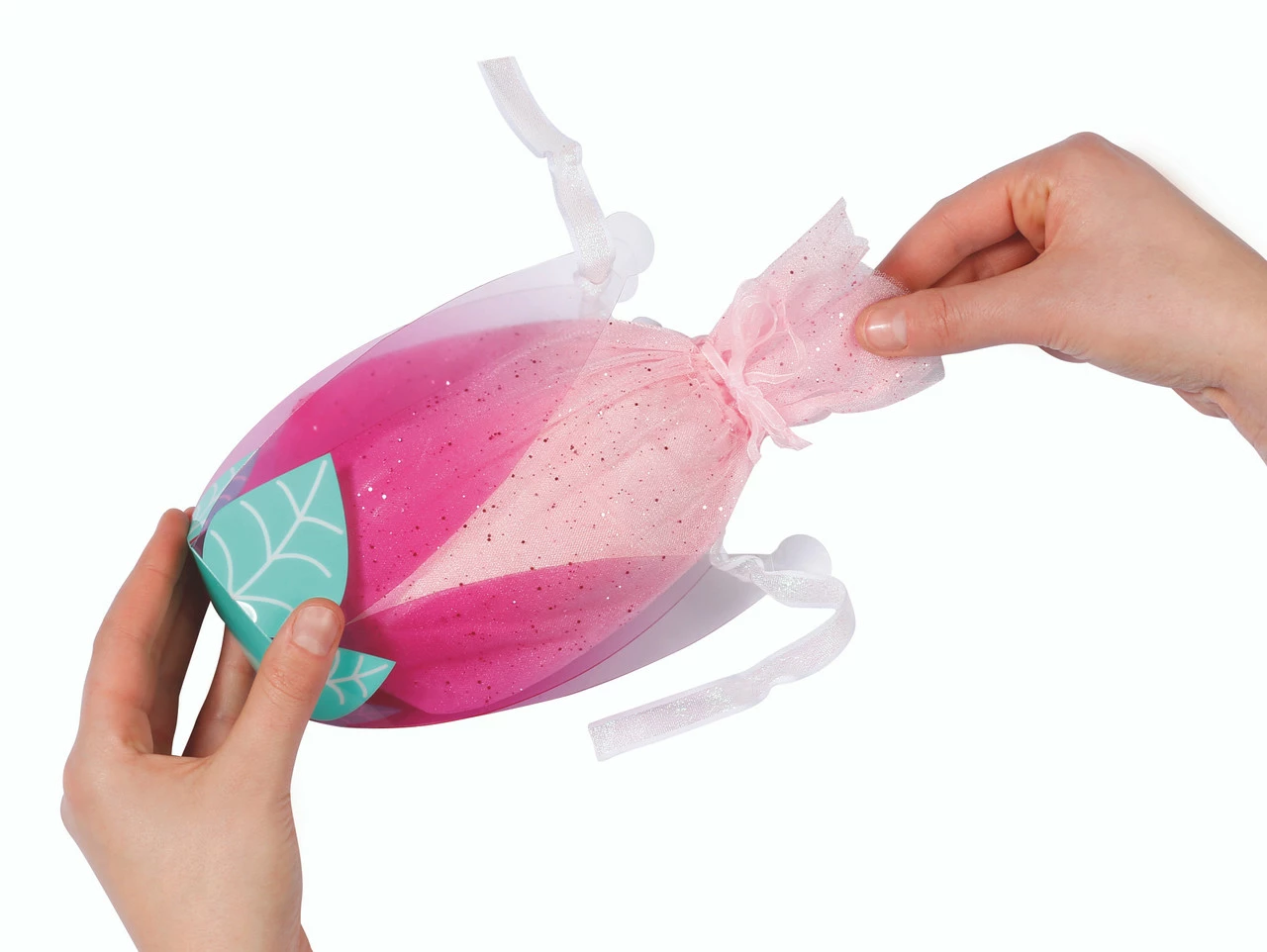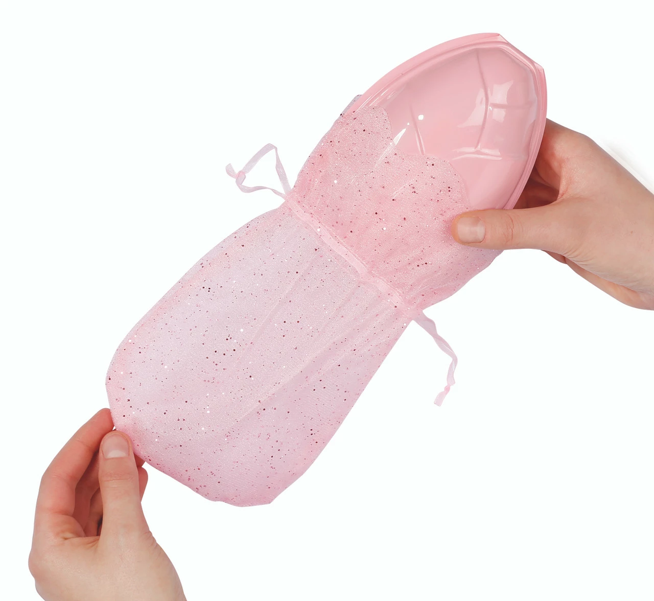 First, you can take off the fabric to look at the babies’ swaddle wrap. The newborn darlings can be taking a nap as a flower, cat or unicorn. Their eyes are still closed. To find out their colour, gently wipe the dolls’ eyelids using a damp cloth. Then carefully open the swaddle wrap to see the skin colour, hair colour and hair style. Have you spotted the great glitter effect? Is it a boy or a girl, and what colour is its baby bottle?