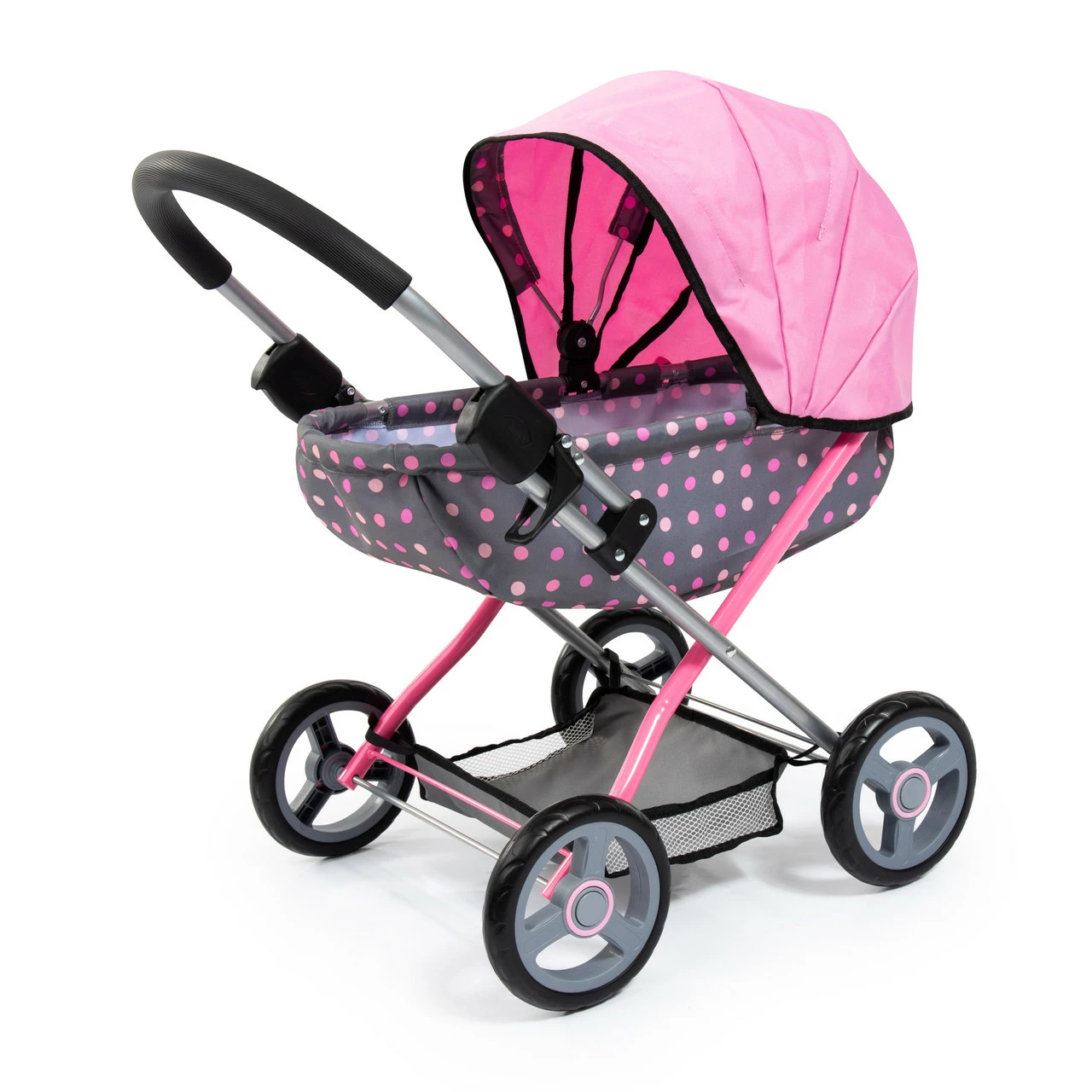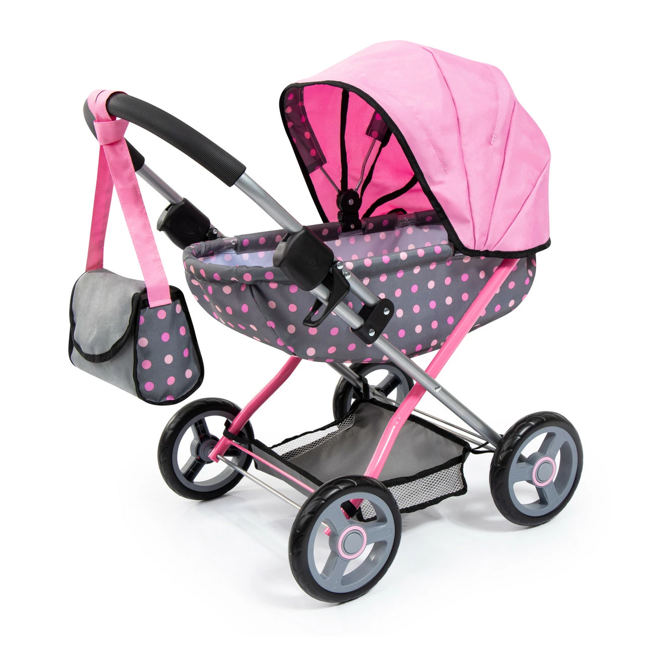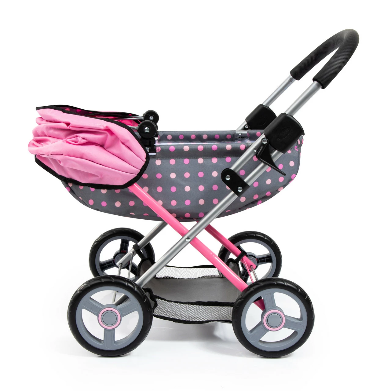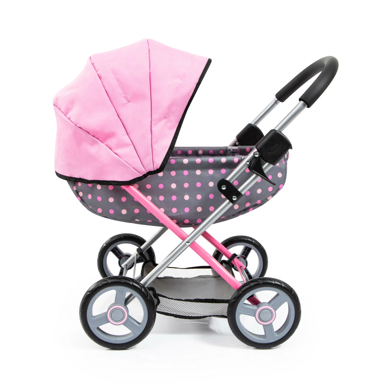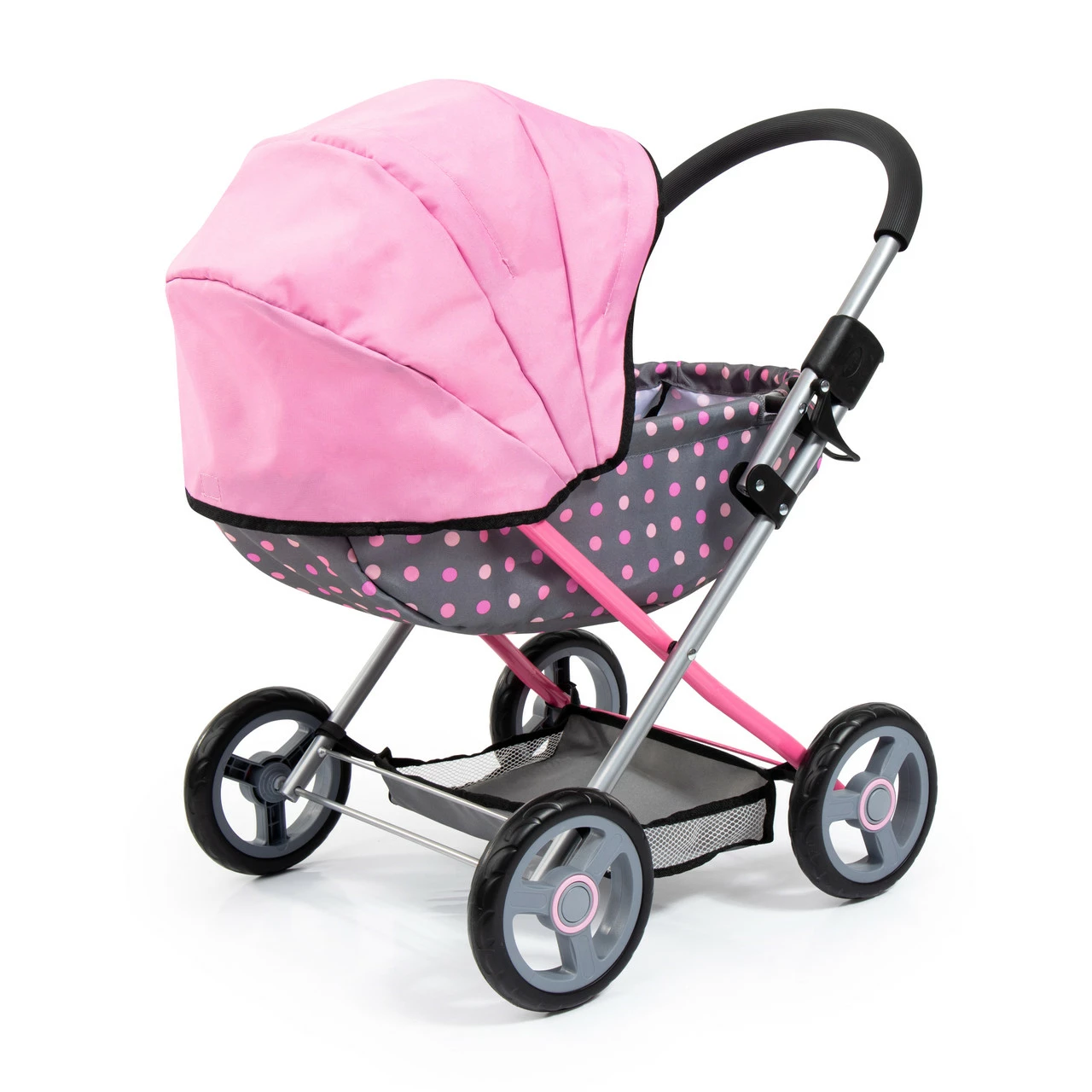 The doll’s pram COSY has a lovely design and with its blanket and matching pillow the doll can fall in sweet dreams. The doll’s pram is suitable for dolls up to 46 cm. The bicolored frame with the modern colour matching wheels as well as the adorable sun hood give COSY its fantastic look. The integrated basket and the shoulder bag offer a lot storage space for everything needed for a trip with the favourite doll. Thanks to the big wheels, the doll’s pram COSY can be driven easily on uneven areas. For transportation or storage reasons the doll’s pram can be folded.