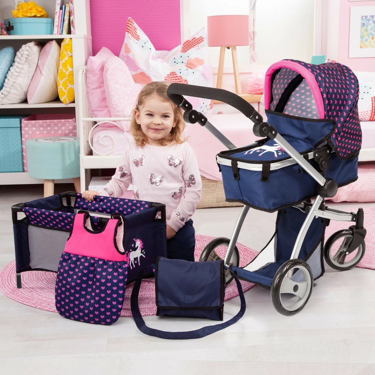 - Due to the adjustable handle, this pram is already suitable for little girls and boys.