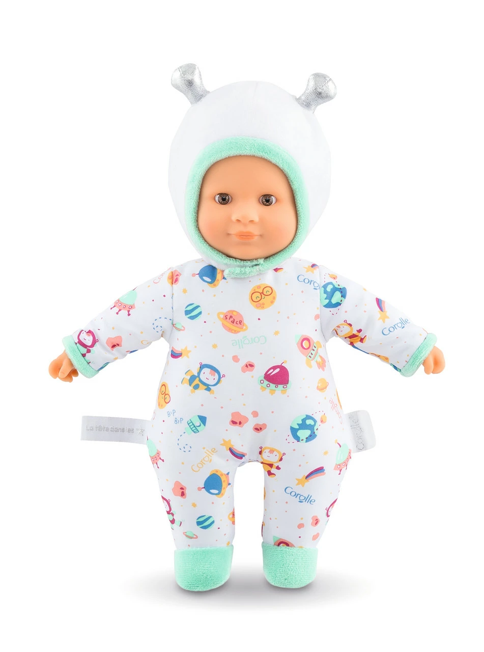 Small 12″ baby doll. Ideal present for baby’s first birthday and or first Christmas!