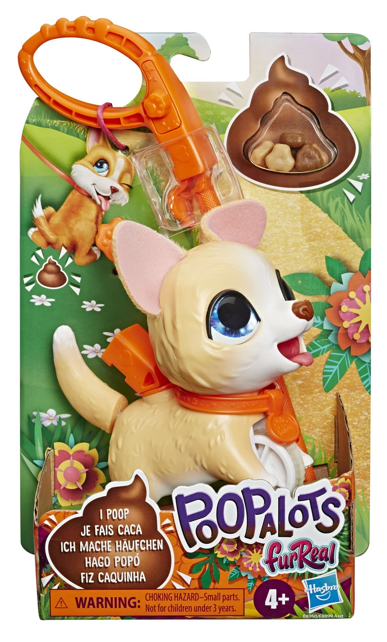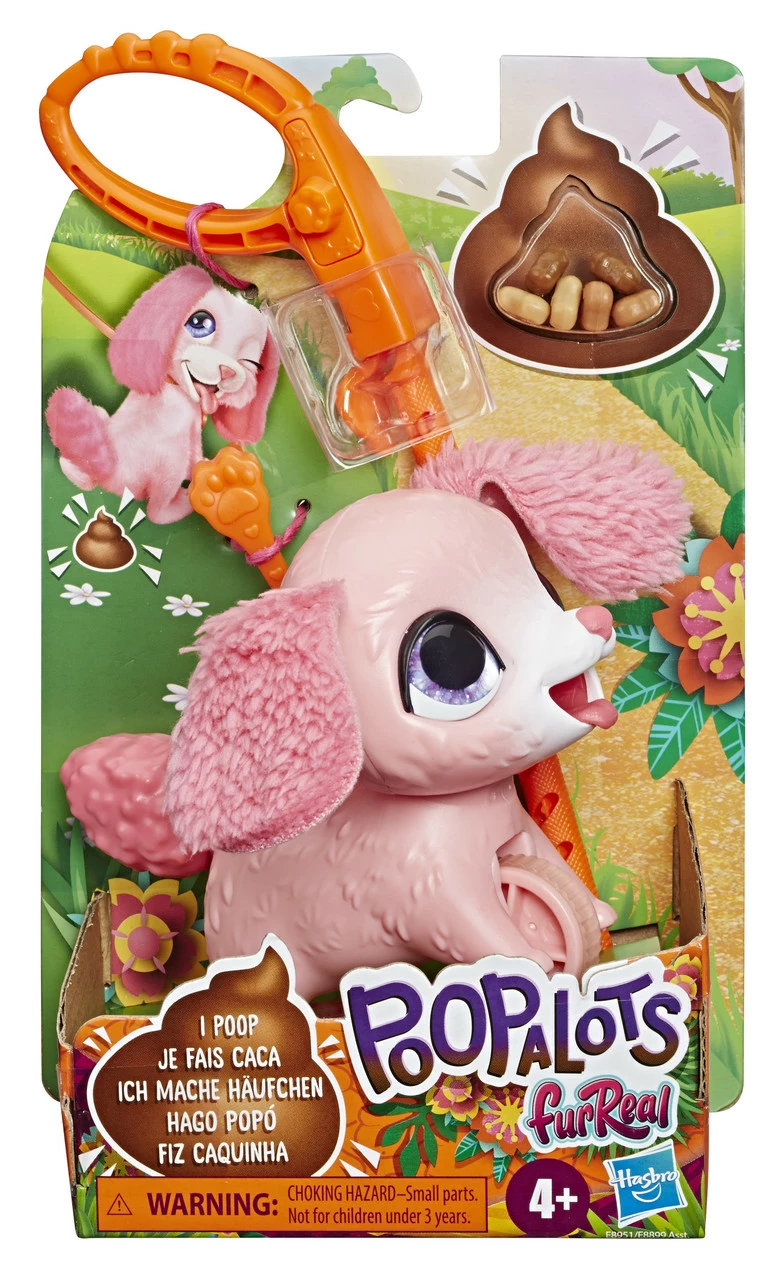furReal Poopalots pets feature a connectible system that lets kids walk one pet, or their favorite pack! This poopin’ pet comes with a detachable leash to walk him across a tabletop, as well as a connector to add one Big Wags pet or up to two Lil’ Wags pets. (Other pets sold separately. Subject to availability.) Just push him along by his leash and he moves forward. Feed him first if you want him to poop. So, who’s ready for a nice walk after lunch?