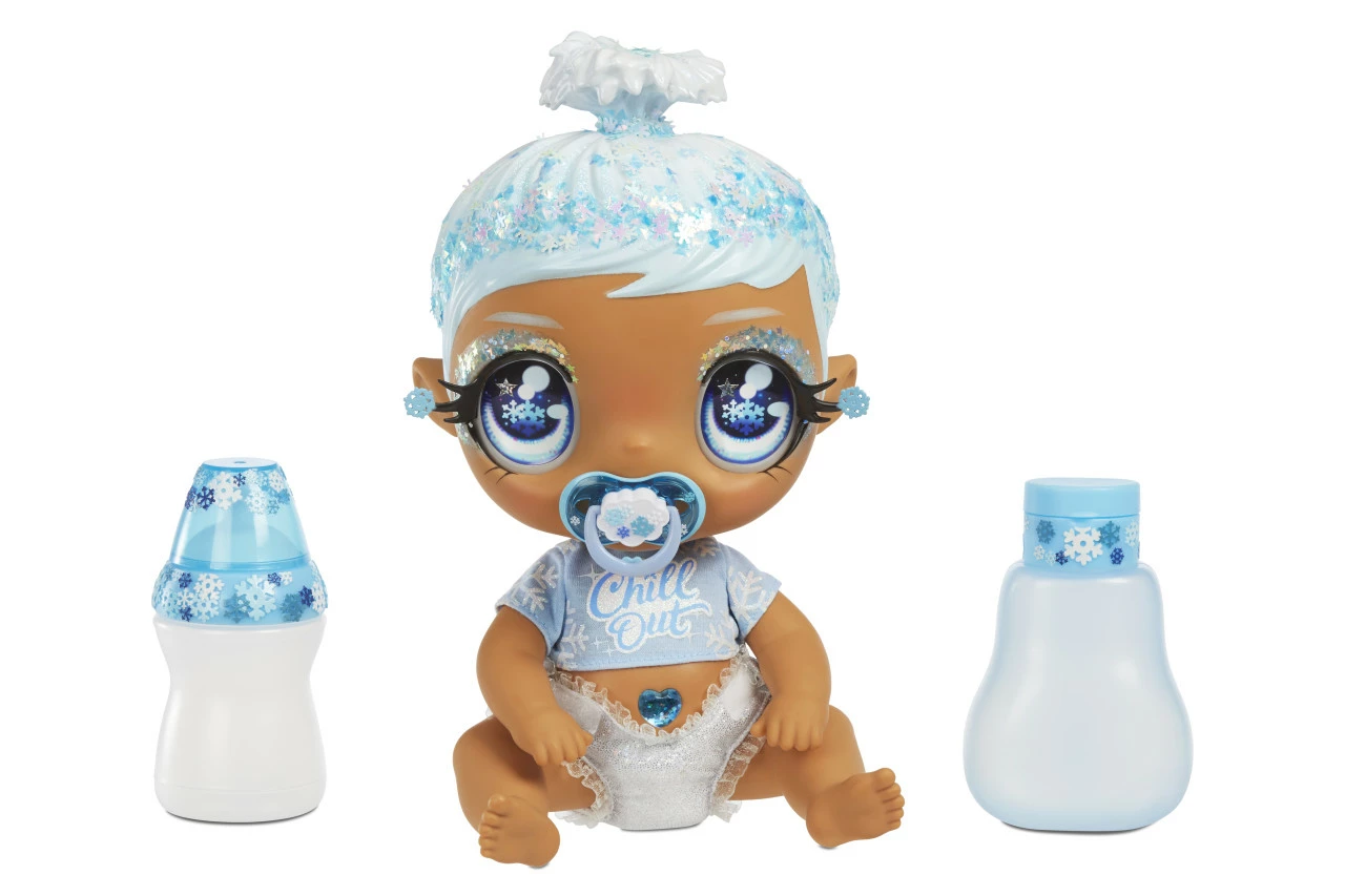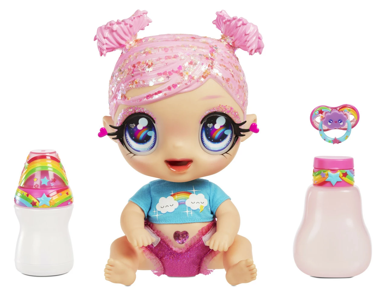 - SPARKLY BABY DOLL: Follow the sparkle into the sunset, take a left at the moon and you’ll discover the magical world of Glitter Babyz. Glitter Babyz are glittering, beautiful, magical babies that have big, beautiful eyes, sparkles on their eye lashes and glitter in their hair.