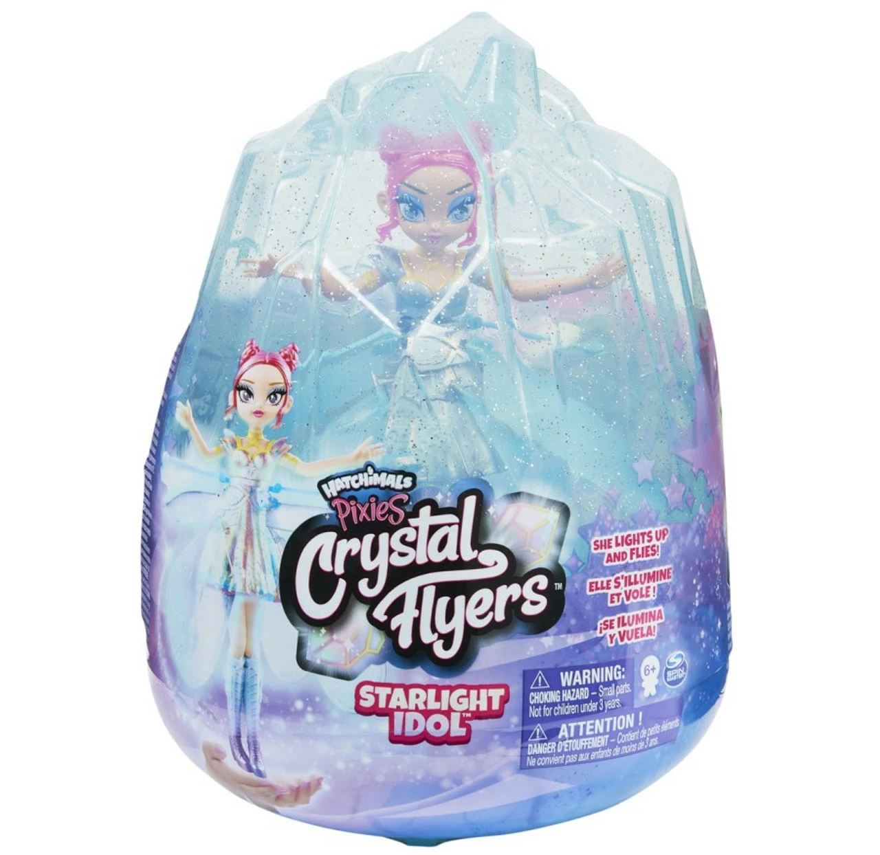 Made of durable and safety tested materials, if you accidentally touch her wings while she’s flying, it’s completely safe – with an auto-stop feature, she’ll stop flying right away. When she’s not flying, display your Starlight Idol Pixie inside her sparkly clear crystal egg! Hatchimals Pixies Crystal Flyers toys for 6-year-old and up (each sold separately) are the perfect gifts for kids. Bring your very own Hatchimals Pixie to life with the Hatchimals Pixies Crystal Flyers Starlight Idol! The magic is in your hands!