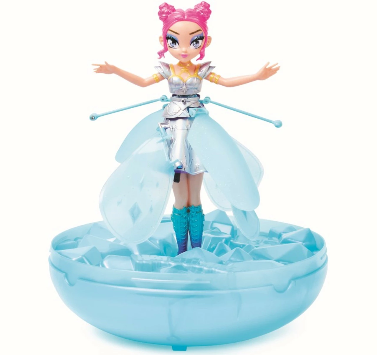 Discover a magnificent Hatchimals Pixie that lights up and flies with the Crystal Flyers Starlight Idol! Crystal Flyers are the first-ever Hatchimals Pixies that can really fly with your help! Inside of the gorgeous crystal egg, you’ll find a beautiful Crystal Flyer Pixie with glittery wings, an iridescent dress and metallic makeup. Remove your Starlight Idol Pixie from her egg and charge her with the included USB cable. When she’s fully charged, she’s ready to air dance and light up the sky! Switch your Pixie on and the LED lights on her dress will start to pulse and her glittery wings will begin to flutter and spin. Let her go and she’ll magically fly – use your Pixie Power to guide her!