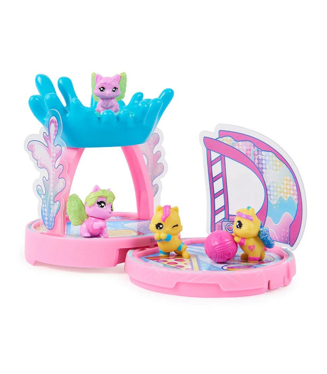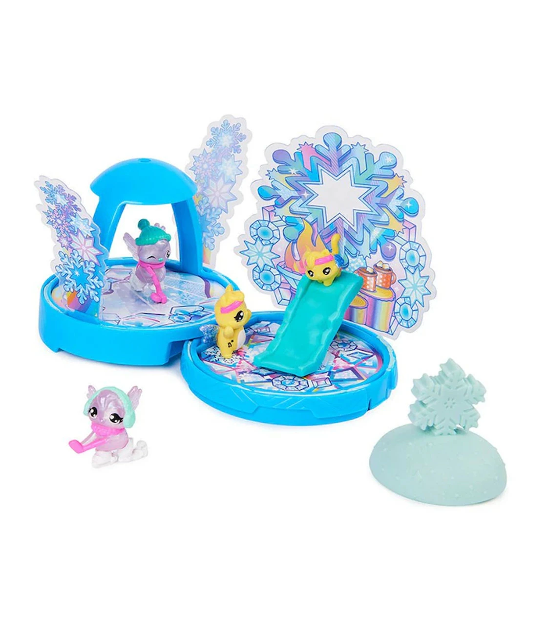 - VACATION PLAYSET: The Hatchimals egg opens into a vacation playset with a unique scene in every pack – camping, hot air balloon, snow, water park and more! Set up the accessories and graphics and play!