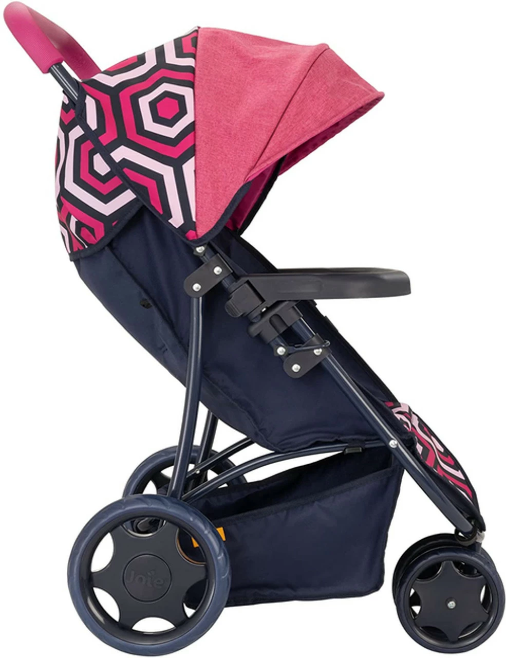 This sleek and stylish Joie junior Litetrax is the only pushchair to be seen pushing your favourite doll in. Be just like Mum with this true replica of the lifesize Joie Litetrax 3 Pram. Your baby doll is sure to travel in comfort as this pushchair boasts many features, including front swivel wheels and large underseat shopping basket to store your shopping and favourite dolls accessories and adjustable hood. Fits dolls up to 43cm. This pushchair is complete with removable front bumper bar and folds flat for easy storage. Suitable for ages 3 -8 years with a handle height of 68cm.