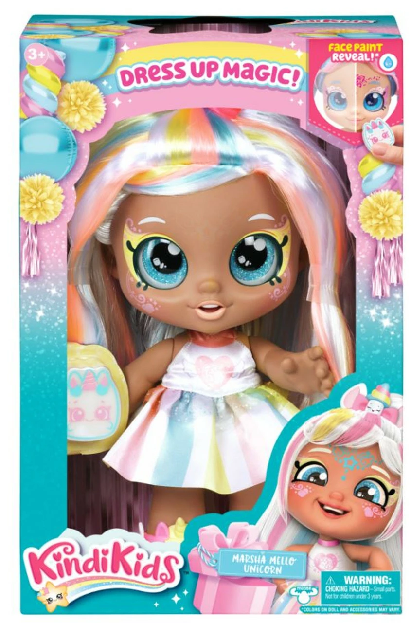 Each with matching themes to their little Kindi Kids sisters! As well as Marsha Mello Unicorn, look out for her other best friends, Jessicake Fairy, Angelina Wings Angel and Tropicana Mermaid! Girls are going to love imagining new adventures with these cute and colourful toy Dolls.