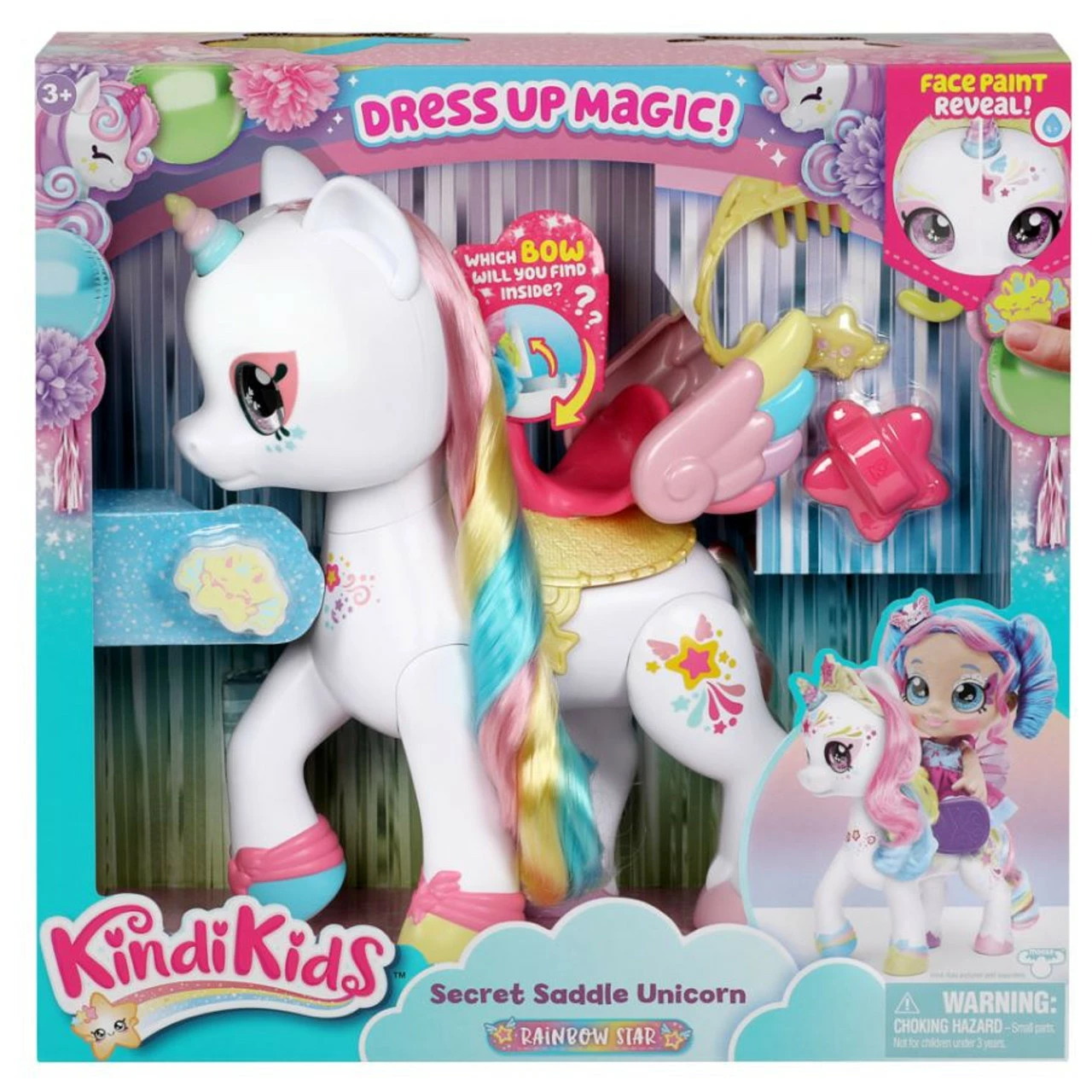 Days are even more magical at the Kindi Kids Rainbow Kindi now that Rainbow Star the Dress Up Magic Secret Saddle Unicorn has arrived! Girls will be so excited as they discover Rainbow Star’s secrets.