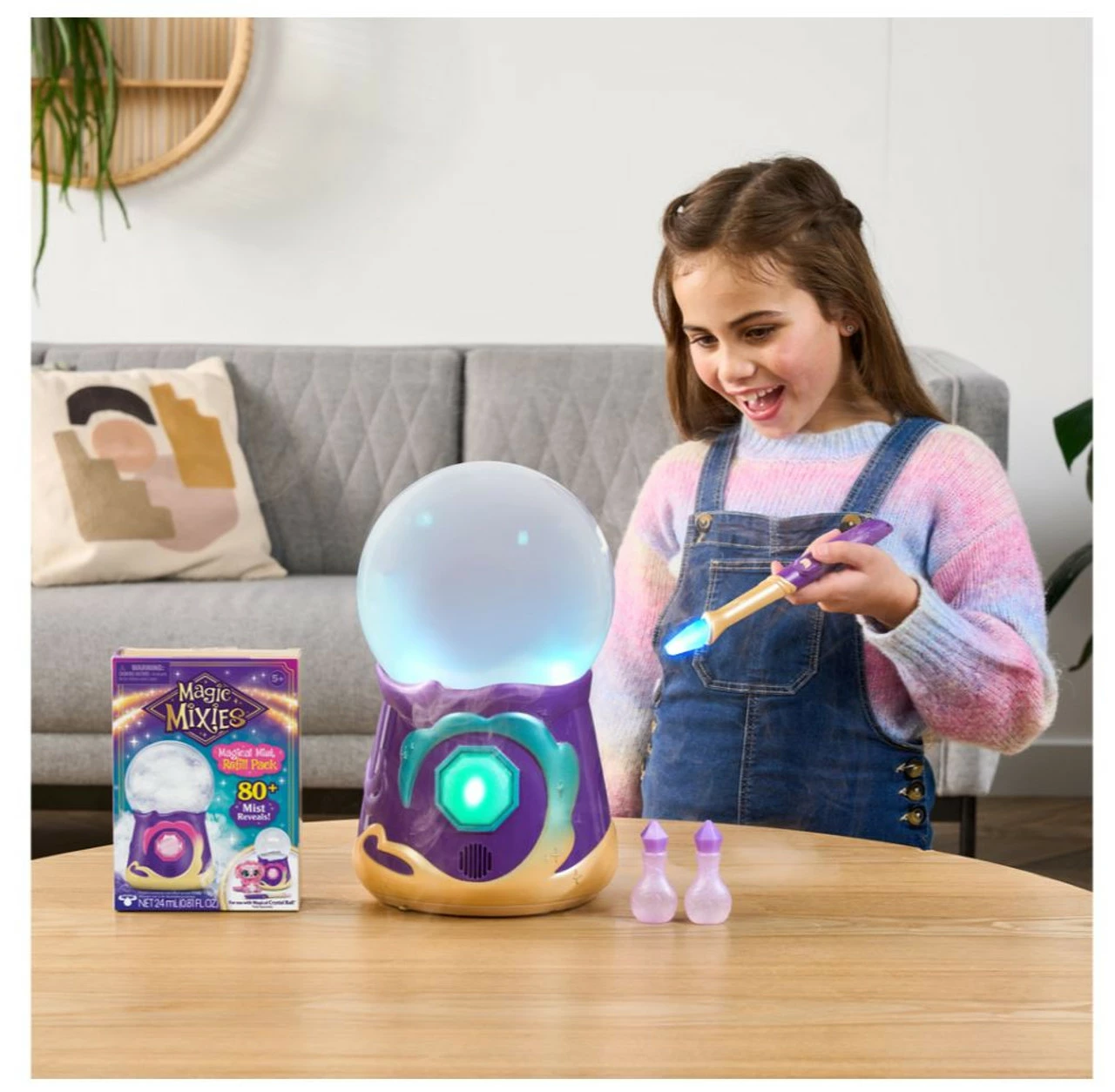 For each step of the Creation Spell, you will need to master the correct wand movement and say the magic word for that step. First, awaken the Crystal Ball, then summon real magical mist before giving your Magic Mixie its voice and color! Then teach it how to tell fortunes before saying the magical words ‘MAGICUS MIXUS’ and bringing your Mixie to life! Then as the mist clears your Magic Mixie appears!