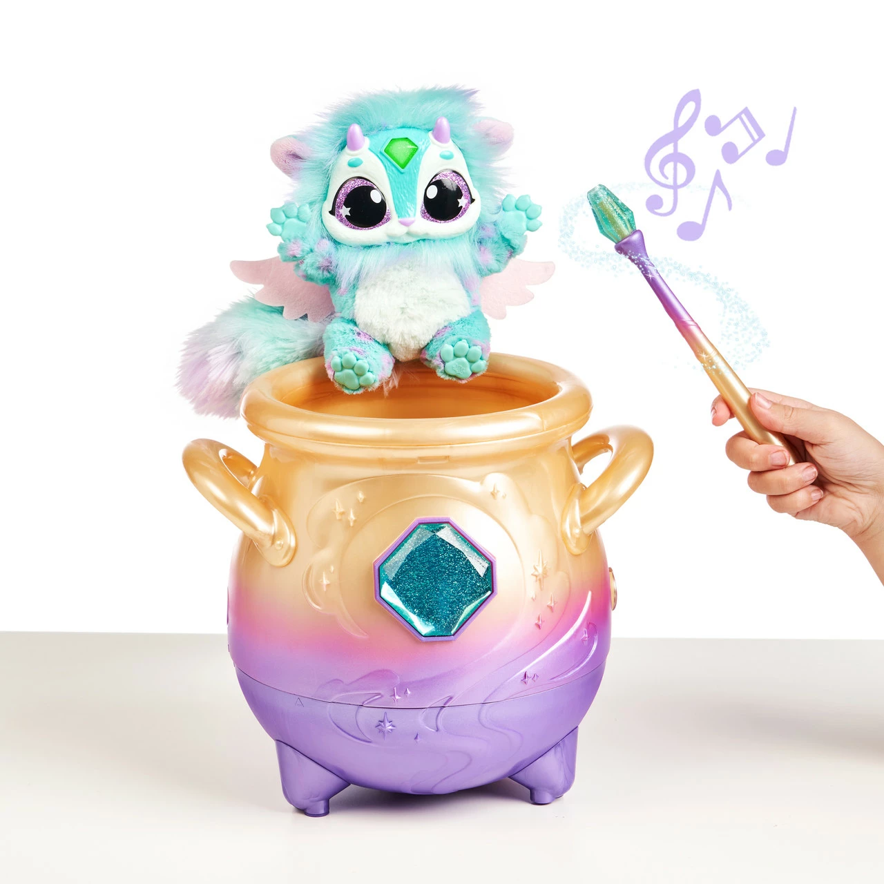So adorable and so interactive, your Magic Mixie reacts to your touch and responds to your wand. They love to perform spells with you and may even grant you a wish as their gem lights up! The more you nurture and care for your Magic Mixie, the stronger their energy levels become.