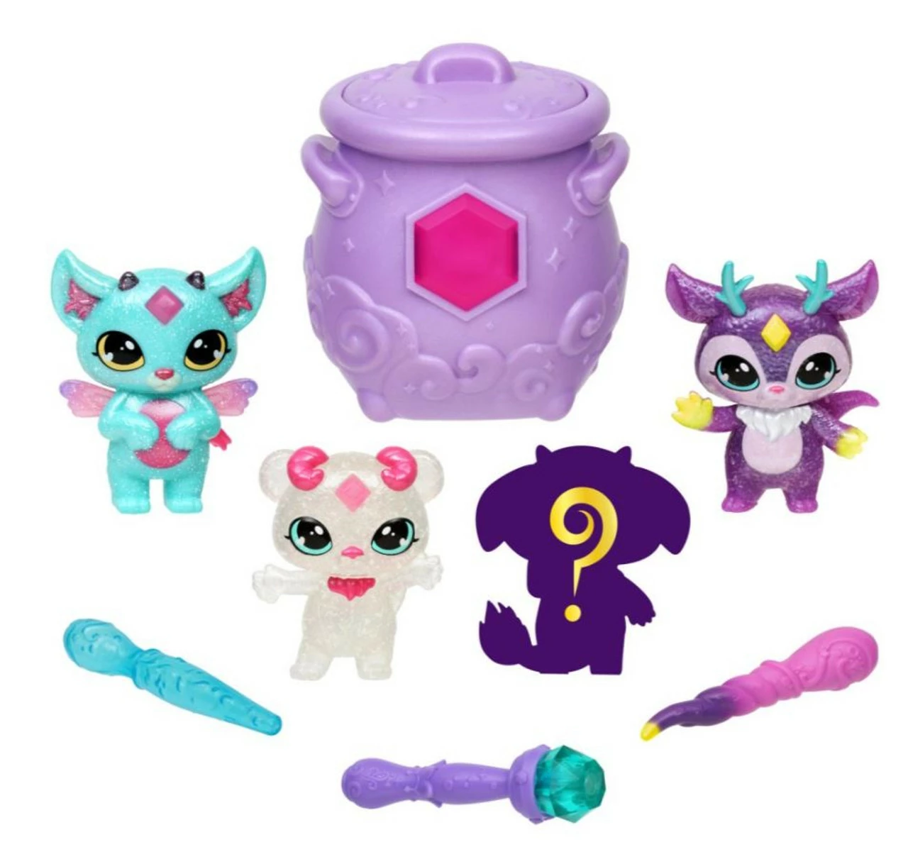 The Sparkle Magic Mega Pack includes 4 Mixlings with an exclusive sparkly finish plus one mystery sparkly Mixling in the included Cauldron. Who will you find inside?