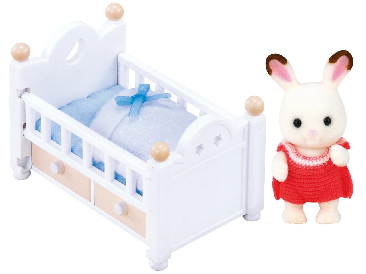 Chocolate Rabbit Baby Crème loves bedtime. This set includes Chocolate Rabbit Baby figure, cot and bedding. Set doesn’t include Teri Chocolate (Mother)