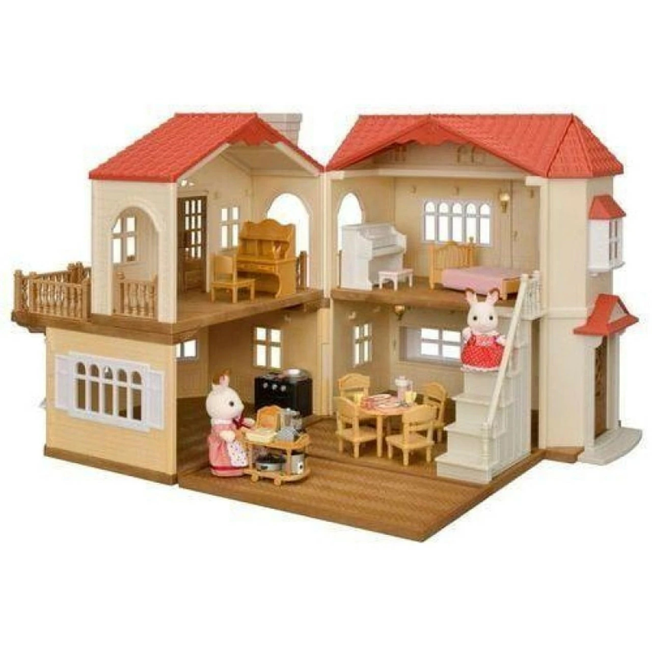 The Red Roof Country Home features a red roof with brightly coloured walls that makes up the delightful Chocolate Rabbit Family home. The rooms in the Red Roof Country Home come with 3 lights, each of which can be turned on and off and the whole house can be opened up for play at 90-degrees, 180-degrees and any angle in between. Closing up the house creates the appearance of a wonderful home, no matter which angle you look at it from, with light spilling out through the windows making it quite the sight to behold. The second-floor room on the left side, and the roof on the right side are removable. Placing this room on top of the roof or placing the roof on top of the terrace creates a large, three-story house to play with. Connect to Red Roof Cosy Cottage to create a large, three-story house (sold separately). Placing figures and furniture into these rooms allows for even more enjoyable pretend play (sold separately). The Gift Set includes Chocolate Rabbit Figures, Teri and Freya Chocolate Rabbit, Bed, Piano, Desk, Kitchen Cookware Set, Oven, Table and Chairs. Age: 3yrs+