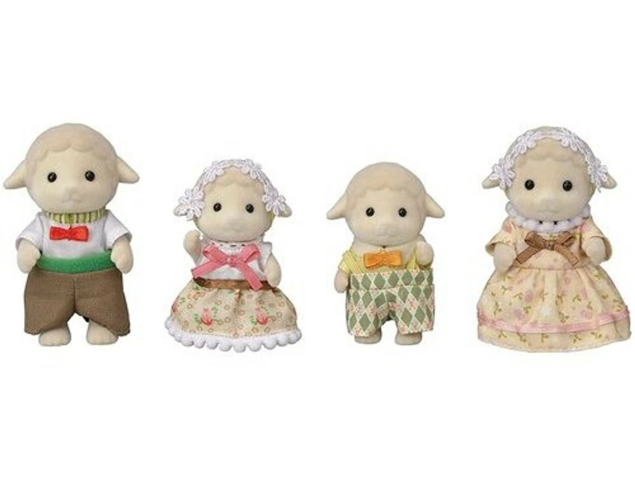 Meet the Dale Sheep Family, Father Ewan, Mother Barbara, Brother Winton and Sister Lona. Dressed in removable fabric clothing, these miniature animal figures have articulated arms, legs and head and are made with a high quality fabric giving them a soft velveteen surface. Each figurine has its own story and can be complemented with a range of accessories. Age: 3 yrs+